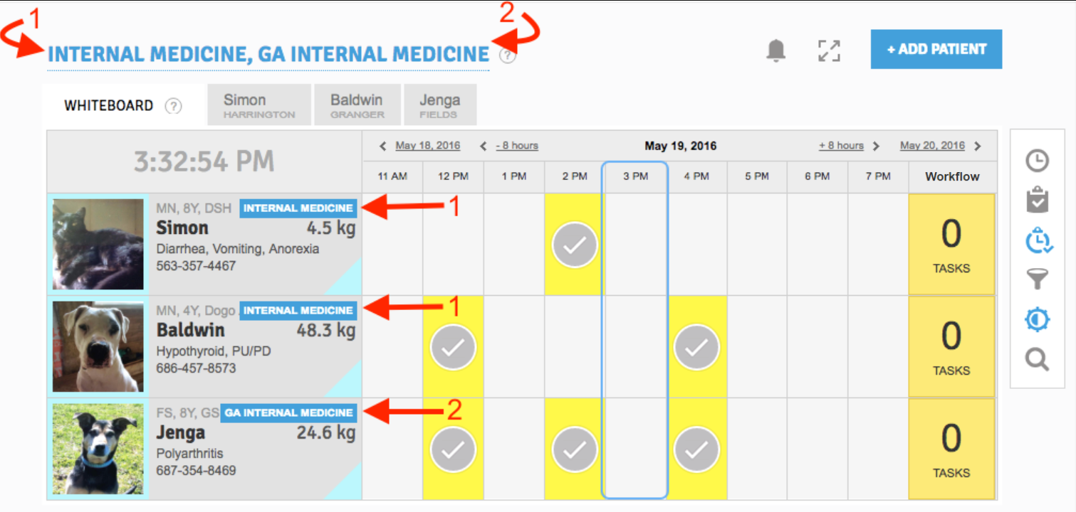 For example, Internal Medicine would have both the Internal Medicine and GA Internal Medicine departments displayed on their whiteboard in order to see all of their patients:
