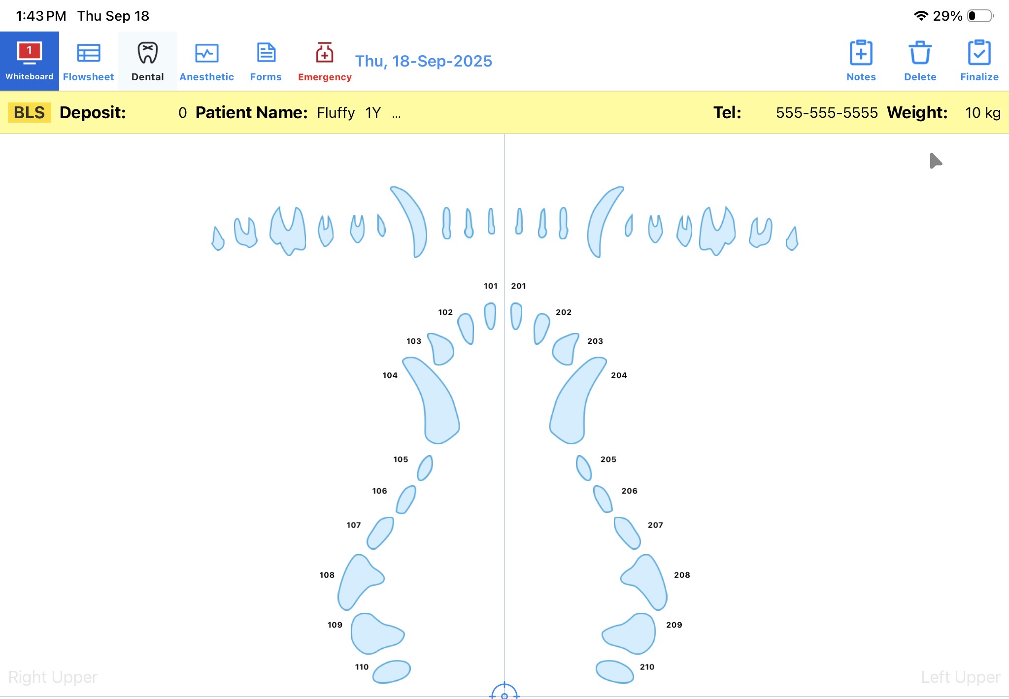 One-Click Sheet Creation: Instantly generate new Anesthetic sheets and Dental charts wherever you are, speeding up patient setup and minimizing workflow interruptions. If a sheet already exists for the patient, simply tap the icon to access it.